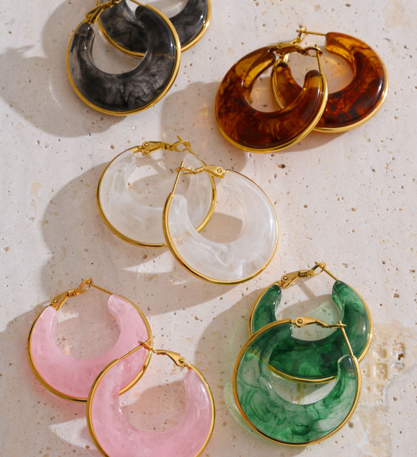 Elevate your everyday look with our Acetate Acrylic Resin Chunky Geometric Flower Hoop Earrings. Perfect for daily wear, these earrings blend bold, chunky design with elegant floral motifs, crafted from durable acetate acrylic resin to ensure lasting beauty. Their unique geometric style adds a chic, contemporary flair, making them an ideal accessory for the modern woman. Lightweight and comfortable, they seamlessly complement any outfit, whether you're dressing up for a night out or adding a touch of sophistication to your work attire. Enhance your jewelry collection with these stylish and versatile earrings that effortlessly combine fashion-forward design with timeless appeal.