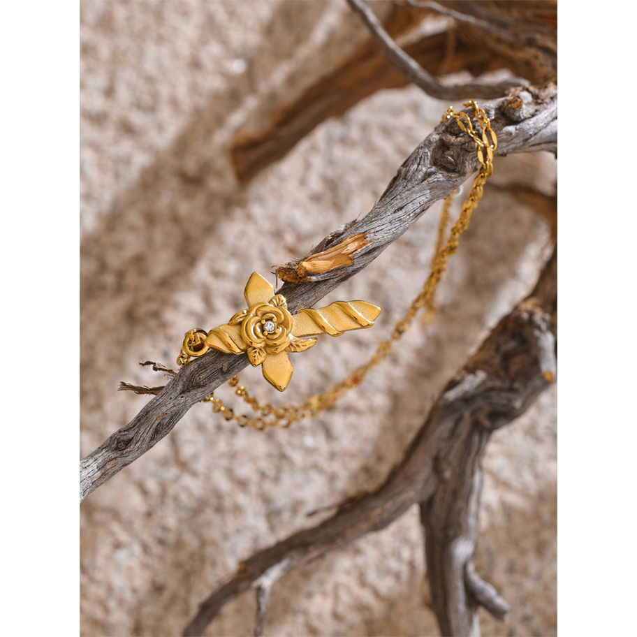 Elevate your elegance with the Flower Cross Pendant Necklace, meticulously crafted from 18K gold color PVD plated stainless steel. This sophisticated collar seamlessly blends timeless charm with modern durability, ensuring it stays radiant through everyday wear. Perfect for both formal occasions and daily styling, its intricate design captures the delicate beauty of nature in a cross motif. Designed for the discerning fashionista, this exquisite piece embodies luxury and resilience, making it a must-have addition to any jewelry collection. Explore the combination of classic aesthetics and lasting quality in this stunning necklace, now available for global shipping.