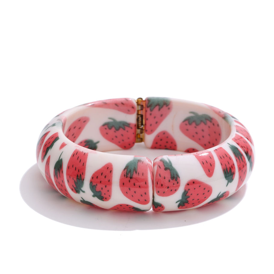 Strawberry Lemon Cherry Wide Bracelet Bangle Fruit Designs Jewelry